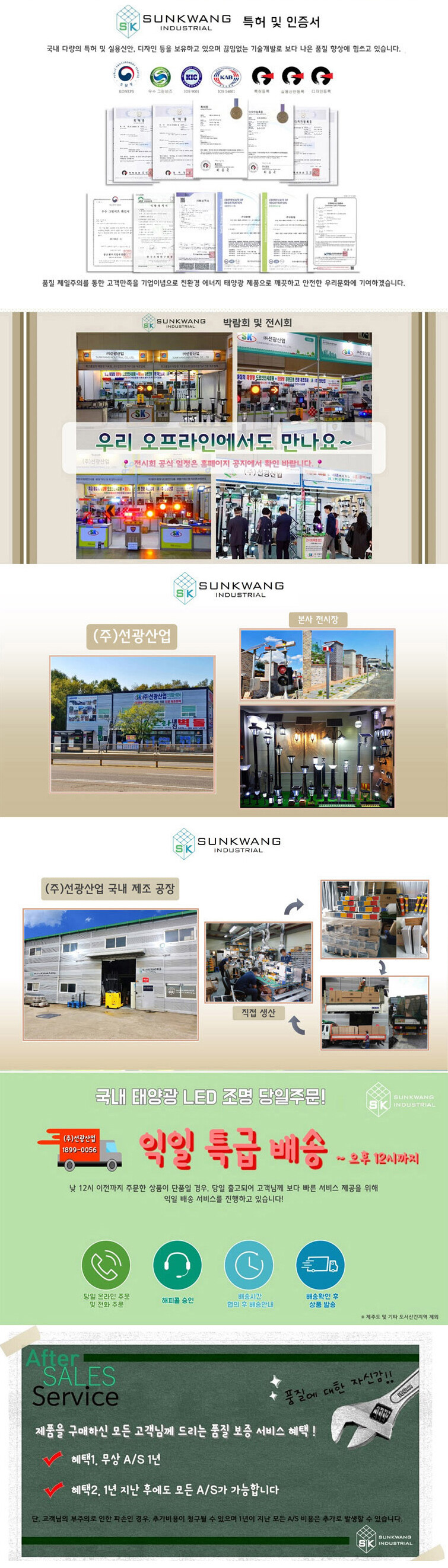 단순변심에 의한 교환, 반품을 하실 경우 상품 반송 비용은 고객님께서 부담하셔야 합니다. (LED 색상 및 모델명 교환, LED 밝기 및 태양광등 지주 사이즈 교환 등 포함)