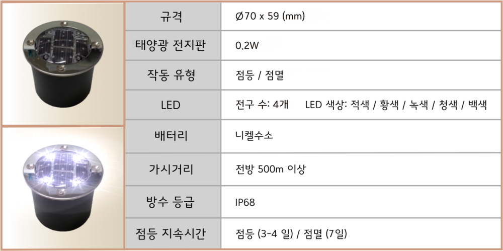 * 친환경 무공해 태양에너지로 자동 ON/OFF 기능으로 작동됩니다.