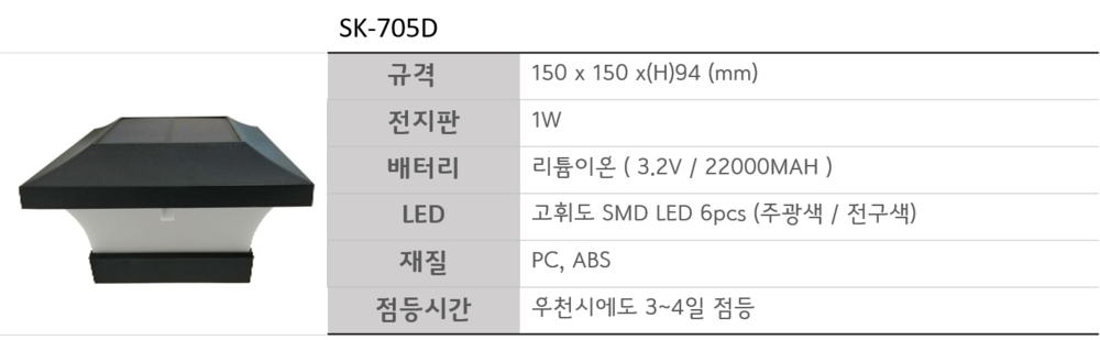 # 전기가 필요 없어 설치 및 이동이 간편합니다. # 장마철, 동절기, 짙은 안개 시에도 축전했던 태양에너지로 불빛이 들어옵니다. # 태양광에 의해 자동적으로 낮에 충전 후 어두워지면 자동 점등됩니다. # 특별한 기술없이 누구나 설치 가능합니다. # 현대적인 모던한 디자인을 적용한 제품입니다. # 전원주택, 관공서, 공원, 진입로, 유도로, 펜션, 리조트 단지 등 조경 공간이 넓은 장소 혹은 전기 설치가 어려운 장소 및 어두운 공간에 간편하게 설치합니다.