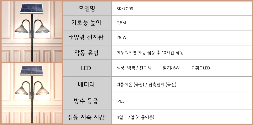 [SK-728S] 태양광 가로등 [전기, 하이브리드 가능]
