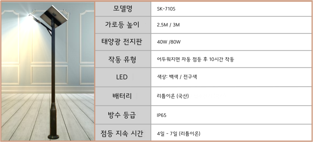 [SK-710S] 태양광 가로등 [전기 하이브리드 가능]