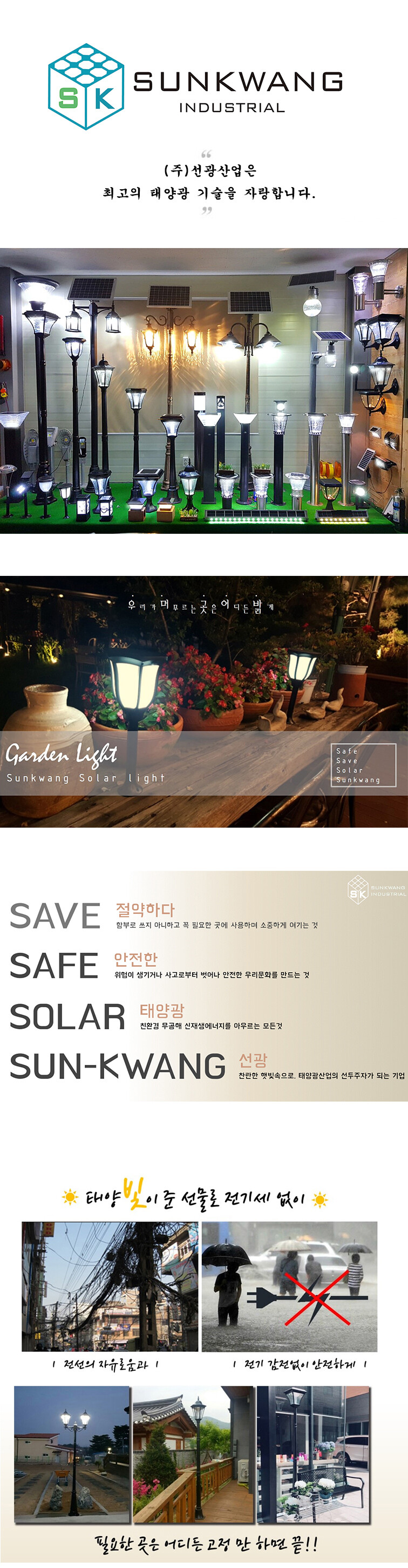 # 장마철, 동절기, 짙은 안개 시에도 축전했던 태양에너지로 불빛이 들어옵니다.