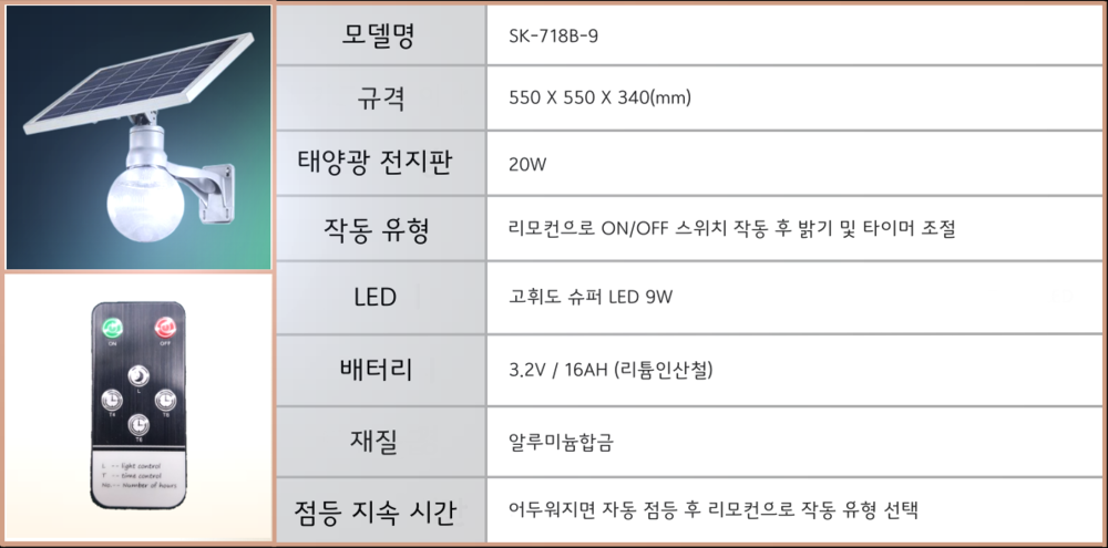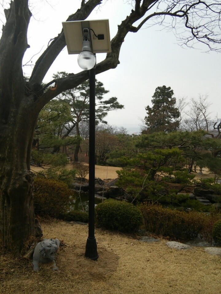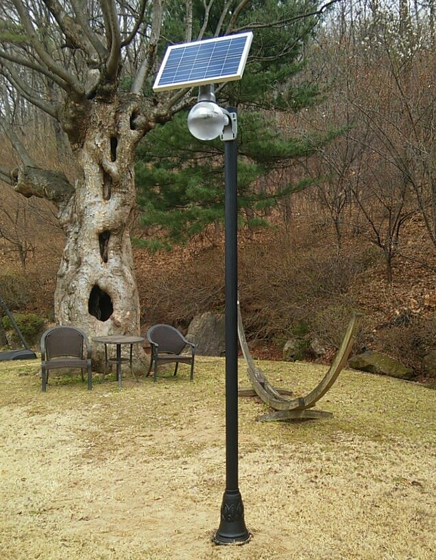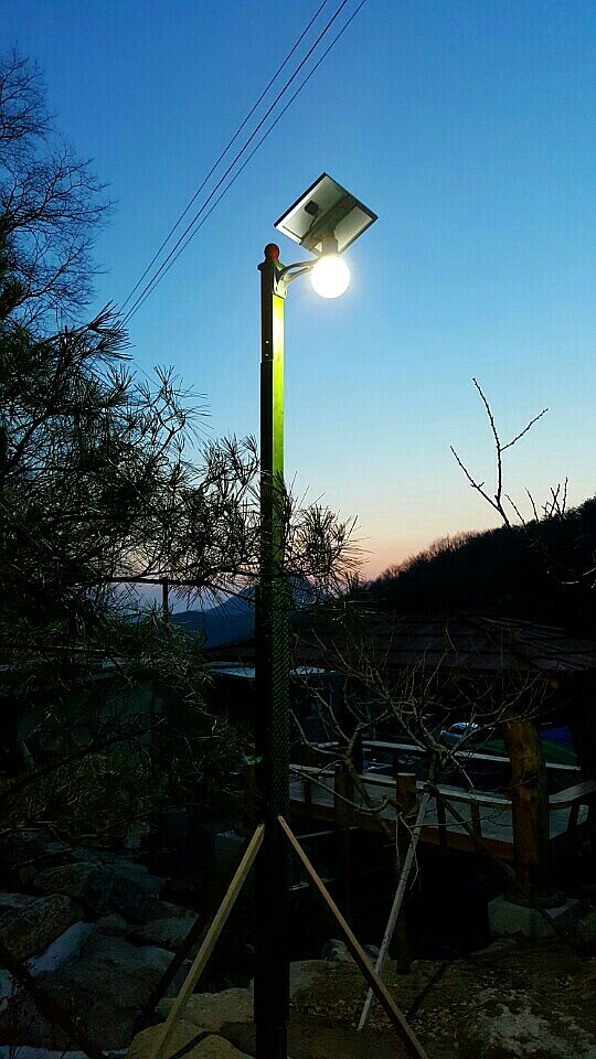 # 태양전지 모듈, 컨트롤러, 축전지, LED등 일체형으로 전기배선 공사가 필요 없습니다.