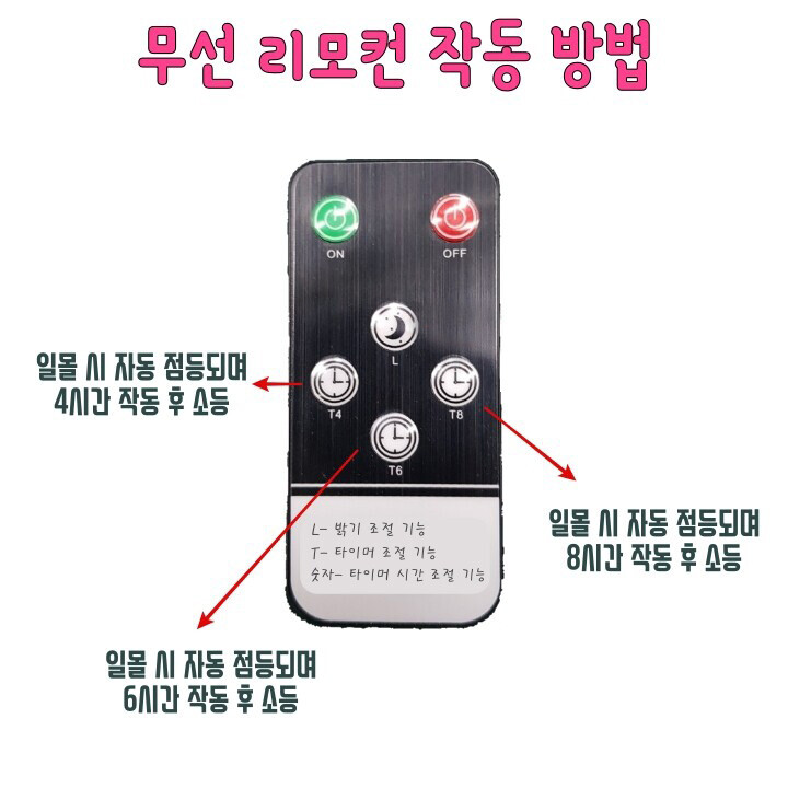 # 태양광에 의해 자동적으로 낮에 충전 후 어두워지면 자동 점등됩니다.