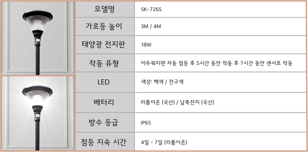 * 태양광 전지판은 자동 조도 센서 기능을 탑재하여 조도에 따라 자동 ON/OFF 기능으로 작동됩니다.