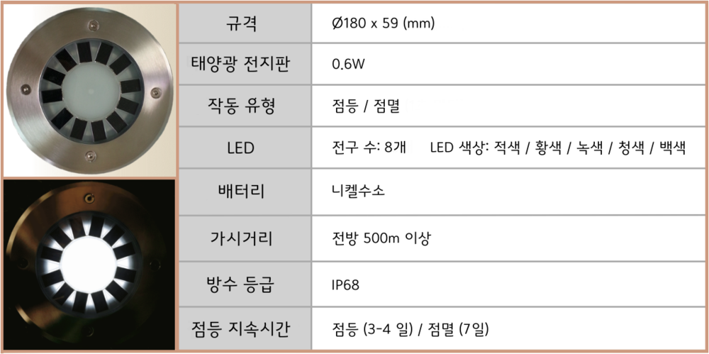 * 친환경 무공해 태양에너지로 자동 ON/OFF 기능으로 작동됩니다.